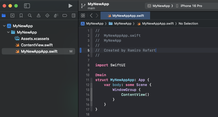 Vamos a ver como podemos implementar esta personalización. En este ejemplo, vamos a abrir nuestro fichero MyNewApp.swift en Xcode