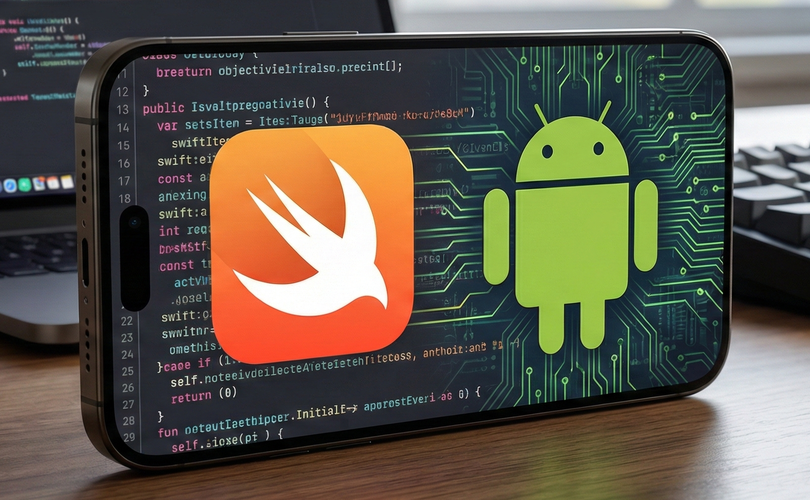 📌 La interfaz visual todavía se construye mayormente con Java/Kotlin, y el código Swift sirve para lógica y partes nativas.